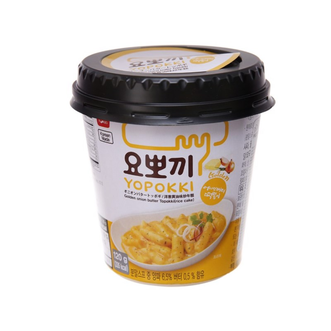 Bolinho de arroz, Topokki ou Yopokki como é chamado, é um tradicional prato da culinária urbana da Coréia do Sul. Nessa versão, além do delicioso bolinho de arroz, é adicionado molho de manteiga com cebola.